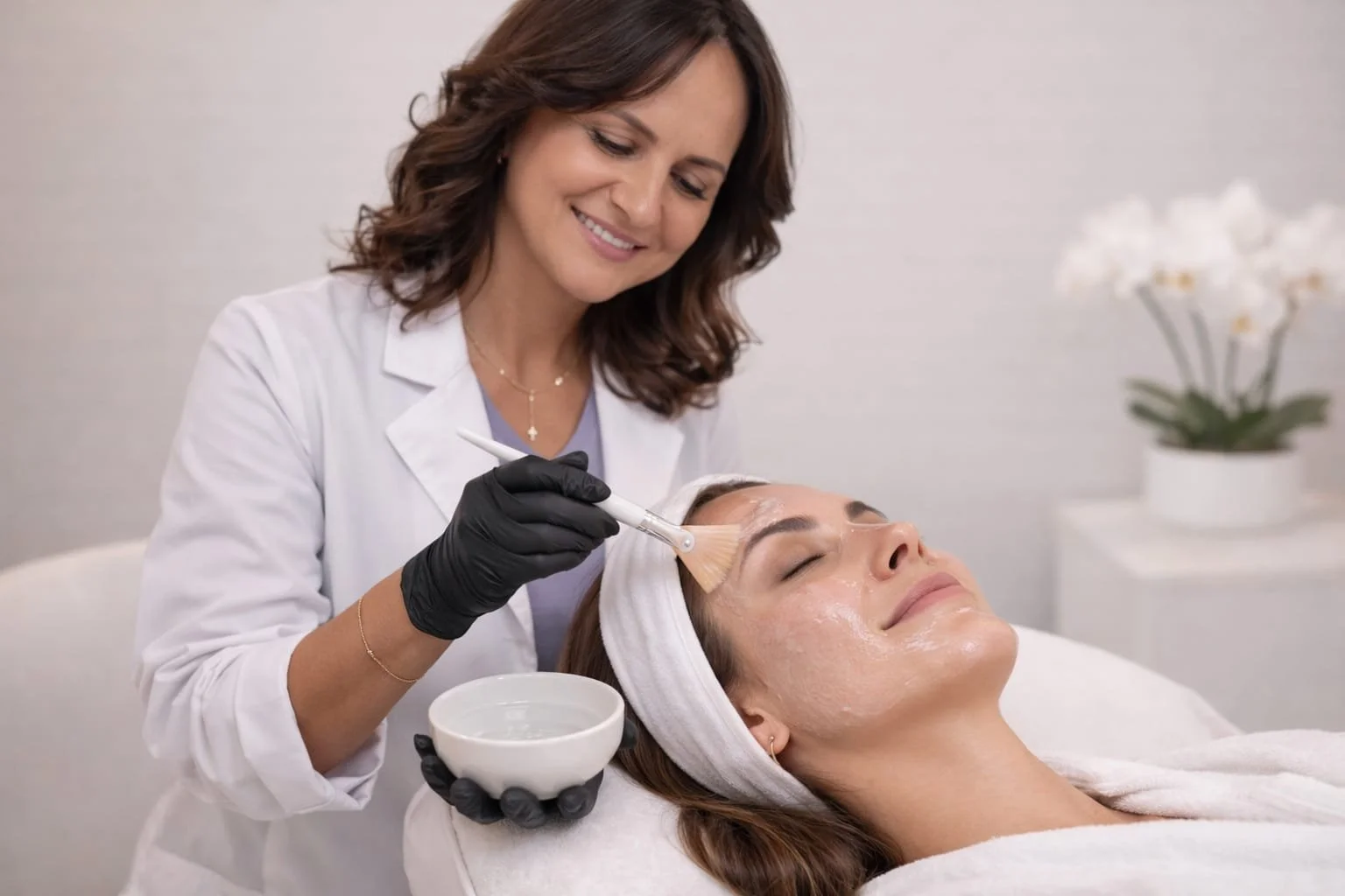 Treatment begins with a skin evaluation to determine appropriate peel depth and formulation.